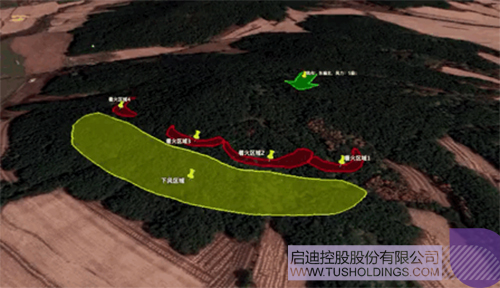 根據(jù)3V復合翼無人機拍攝火場畫面生成的沈陽棋盤山火場態(tài)勢圖