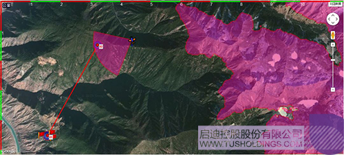 圖中右邊紅色區(qū)域為山高超過4200米的區(qū)域,為避免撞山不能靠近此區(qū)域。