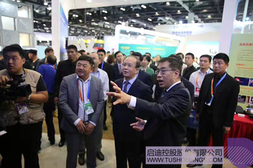 文化部黨組成員、副部長丁偉(前排右二),北京市副市長王寧一行視察啟迪數(shù)字天下京交會(huì)展區(qū)