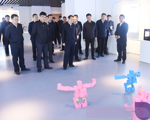 考察期間,易煉紅書記一行來到啟迪科技園區創新成果展示中心,觀摩了啟迪的發展歷程和成果,重點了解了啟迪雙向雙創基地與新松集團、東北大學等機構合作創新的大健康機器人、教育機器人等項目。易煉紅書記提出,轉型升級是企業發展的核心關鍵;啟迪應當繼續高舉創新旗幟,將創新融入到三好街的整體發展規劃中來,永葆三好街的生機與活力。