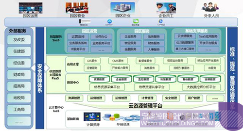 啟迪園區(qū)云以公有云的方式,通過移動門戶、PC門戶網(wǎng)站等方式,為用戶提供園區(qū)運營、園區(qū)服務和支撐平臺。通過云架構(gòu),構(gòu)建覆蓋IaaS、PaaS、SaaS全部三個服務層面,集成啟迪控股、合作伙伴、第三方產(chǎn)品和應用,為用戶提供全面的服務。