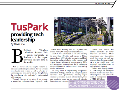 澳大利亞TechInvest雜志刊登啟迪控股旗艦產品—清華科技園報道