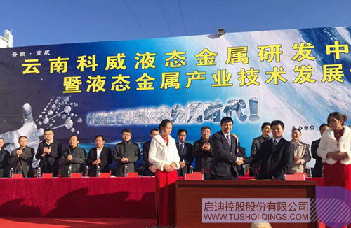 2015年12月22日,啟迪控股通過子公司云南啟迪攜手中宣液態(tài)金屬建立全面長效合作機制,共同組建液態(tài)金屬研究中心,構(gòu)建液態(tài)金屬產(chǎn)學研平臺,在液態(tài)金屬科技研發(fā)與科技應(yīng)用、為液態(tài)金屬產(chǎn)業(yè)發(fā)展提供科技服務(wù)、液態(tài)金屬產(chǎn)業(yè)的人才培養(yǎng)與輸送三個方面重點開展工作。