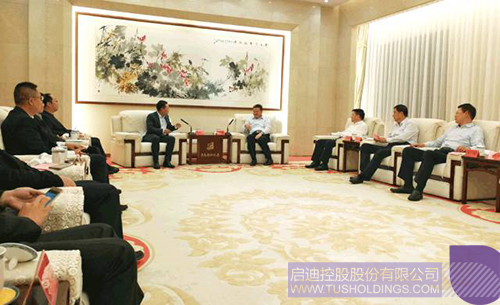 青島市政府相關(guān)領(lǐng)導(dǎo)與啟迪控股代表團(tuán)合影