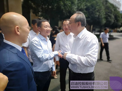 啟迪控股董事長王濟武(左二)與四川省委副書記、省長尹力(右)會面交流